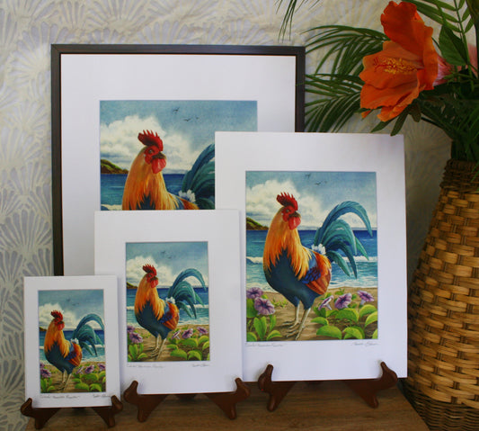 "Colorful Hawaiian Rooster" Matted Giclee Fine Art Print