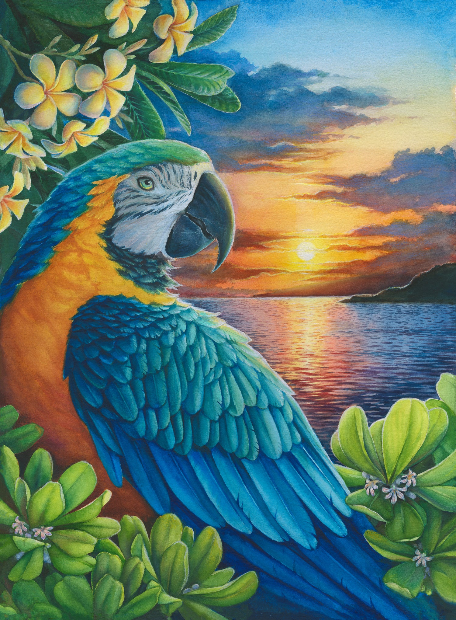 I have always been mesmerized by the grace and beauty of birds. They come in every shape and color you can imagine, even in colors that we, as Humans, will never be able to see. Birds come in such a variety, that one could easily be fascinated for more than a lifetime by them. Although not native to Hawaii, the Blue and gold macaws are surly some of the most breathtaking birds in the world. Their whole body is so colorful, that they almost look as though they were painted by a sunset.