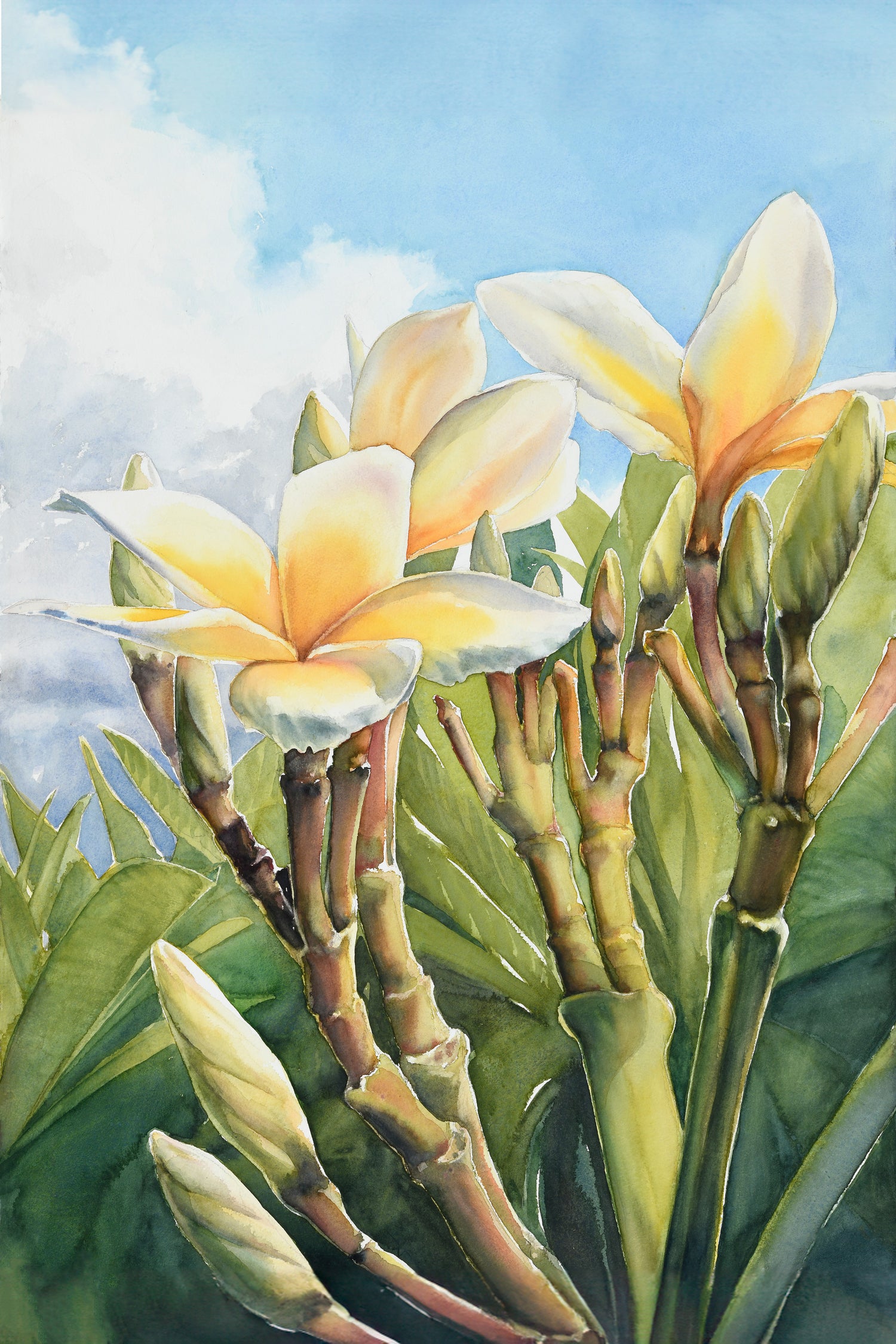 This little Plumeria painting is inspired by my all-time favorite flowers that can be found blooming in a wide array of colors throughout Hawaii, with a scent unlike any other.