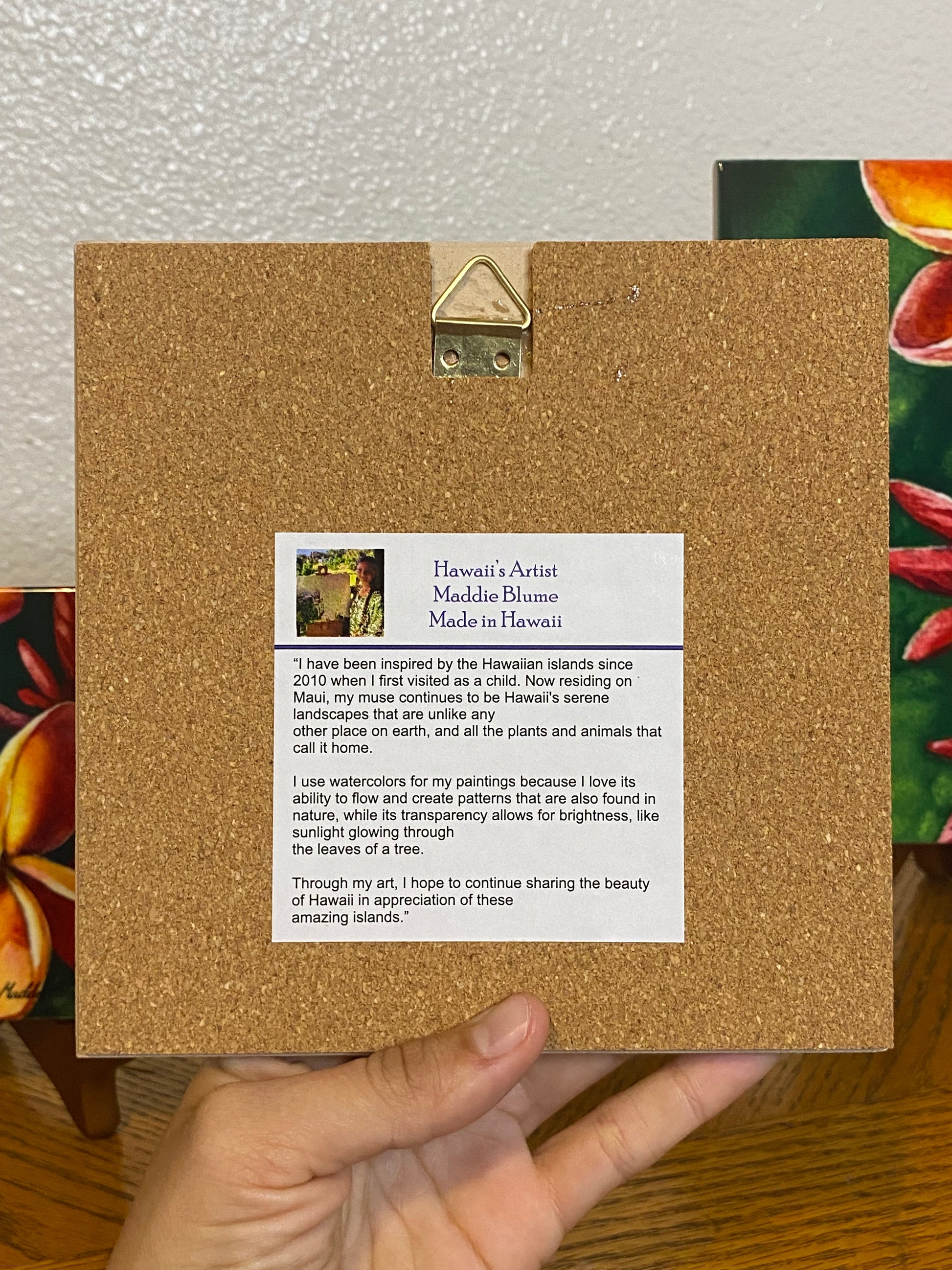 All Tile prints come in three sizes ready to hang with artist bio on the back, and are shipped by Visions of the Tropics, from Big Island, Hawai'i. You can also find these tile prints with twelve of my paintings in numerous shops across the islands.